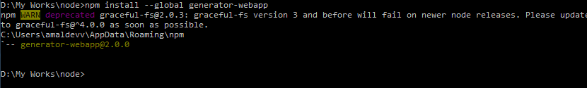 So let's install the webapp generator using the following command.