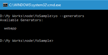 This will install the webapp generator globally and if you run the yo --generators command, it will list the newly added generator. Now let's create a folder for our project and run the following command from the root folder of your project to scaffold items.