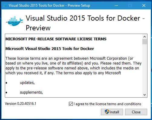 The Visual Studio team also released some tooling for creating containers directly from VS as well as for debugging application hosted in Docker. These are called Visual Studio Tools for Docker and is available for download from the following link.