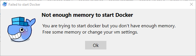 After the installation, when I launched the Docker instance,it showed me an error saying that there is not enough memory to start Docker after some time.
