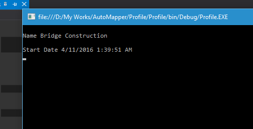 using System; using AutoMapper; using System.Dynamic; namespace AutoMapperSamples.Configuration { namespace AutoMapperSample { public class ModelData { public string Name { get; set; } public DateTime StartedOn { get; set; } } public class TestAutoMapper { public static void Main() { dynamic viewModel = new ExpandoObject(); viewModel.Name = "Bridge Construction"; viewModel.StartedOn = DateTime.Now; var config = new MapperConfiguration(cfg => { }); config.AssertConfigurationIsValid(); var model = new ModelData { StartedOn = DateTime.Now, Name = "Bridge Construction" }; model = config.CreateMapper().Map<modeldata>(viewModel); Console.WriteLine("\nName " + model.Name); Console.WriteLine("\nStart Date " + model.StartedOn); Console.ReadKey(); } } } }