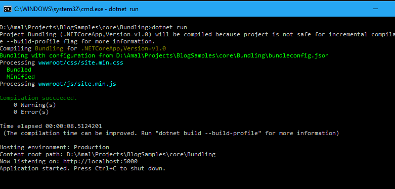 > SET ASPNETCORE_ENVIRONMENT=Automating Bundling process
