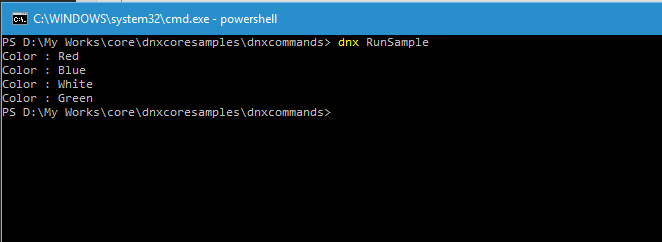 Now we can use the command dnx RunSample instead of dnx run to execute our program from the command line.