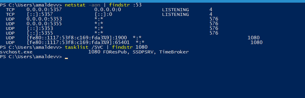 As you can see from the screenshot, port #53 is not being used by anyone and I can safely say that it's not causing the issue.