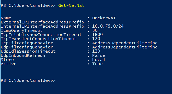 After the restart, I got the same error again while trying to run Docker. So I checked whether the network adapters are configured properly in VM or not. Docker creates a internal Virtual Switch called DockerNat during the installation. You can check whether it's created or not by running the Get-NetNat command from a Powershell window. Mine had only one which was created by Docker and is having the correct IP and subnet.