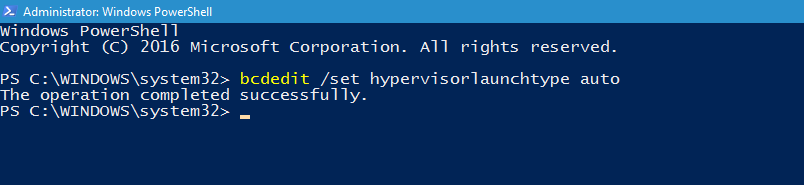 Next you need to make sure that Hypervisor is enabled and set to start automaticall when the machine boots up. Use bcdedit command to verify it and make sure that you are using an elevated command prompt for this otherwise you will get an Access Denied error.