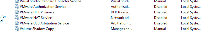 First I thought it was due to the VMWare Services that were already running in my machine. So I disabled all related to VMWare from Services window and restarted the machine to see if the issue is resolved or not.