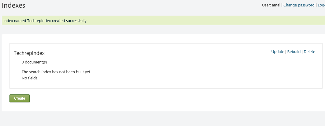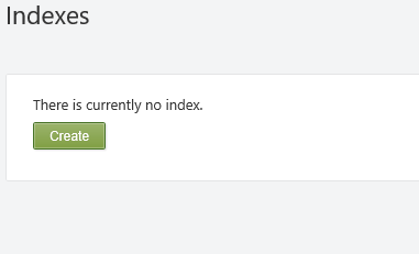 So, let's create an index first from the Index page which can be opened by clicking on the Index link, by default there won't be anything