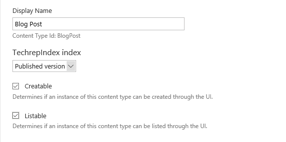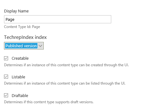 In the edit page, our newly created index will appear and select Published Version option from the drop down and click on the save button to add the pages in our site to the index.