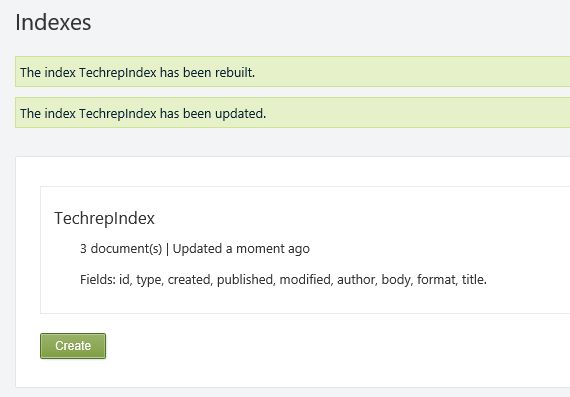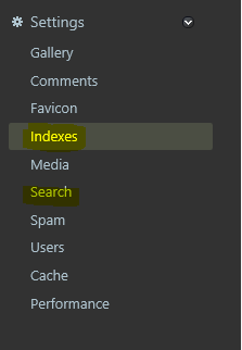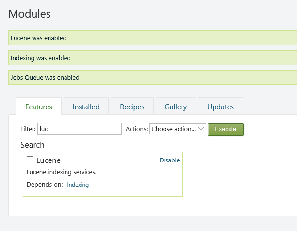 When all the three modules are enable, links for accessing Index and Search will appear under the Settings menu
