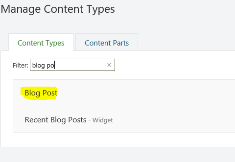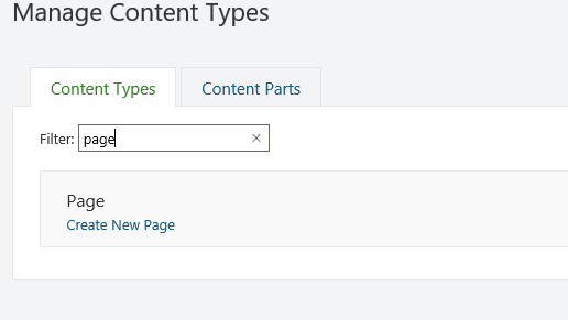 It will not add any documents because we haven't specified the Index to any of the content types we have in our site/blog. So let's add all our pages to the index, click on the Content Definition link from the left menu in the Admin dashboard and type page in the filter box and click on the edit link to edit the content type.