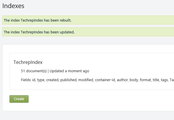 Create a new one using the Create button, then give an name for the index and hit save. Only numbers and letters are allowed in the name.