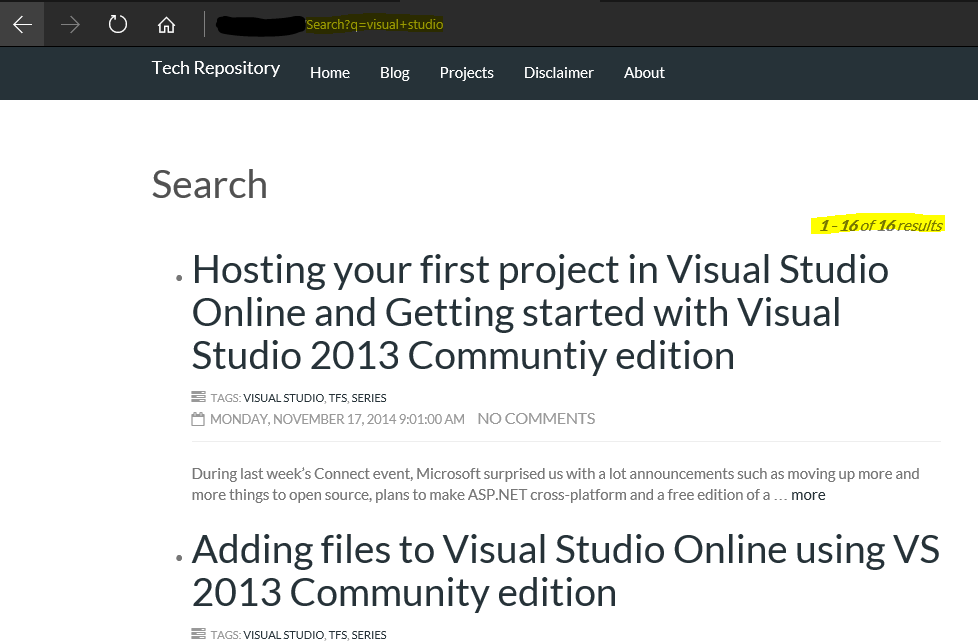Enter the keyword in the search box in the site/blog and hit enter to view the search results.