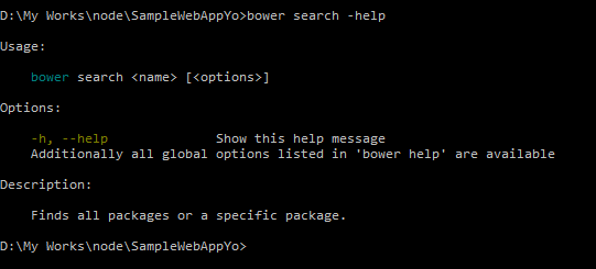 You can also get help on specific command using -help switch. Suppose if we want to more information about the search command, use the one given below.