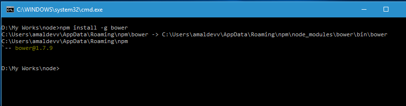 Let's now proceed with installation of Bower. You will need Node.js in the machine as we are using Node Package Manager or npm for installing Bower. If your machine doesn't have one, head over to this post to know more about installing Node.js.