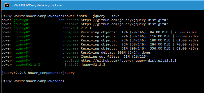 In the last post, I have detailed the steps needs for installing Bower in your Windows machine and in this one I will be showing how to use Bower to install packages in your projects. If you have missed my earlier one on installation, you can read it here.