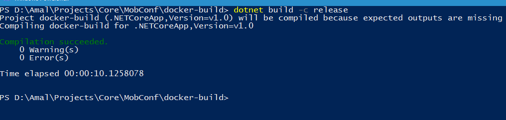 So we have created and compiled a .NET Core project in a Windows machine, created a image in Docker using the dockerfile and executed it in a Linux shell. You won't have imagined a scenario like this couple of years ago. Times do change !!!!