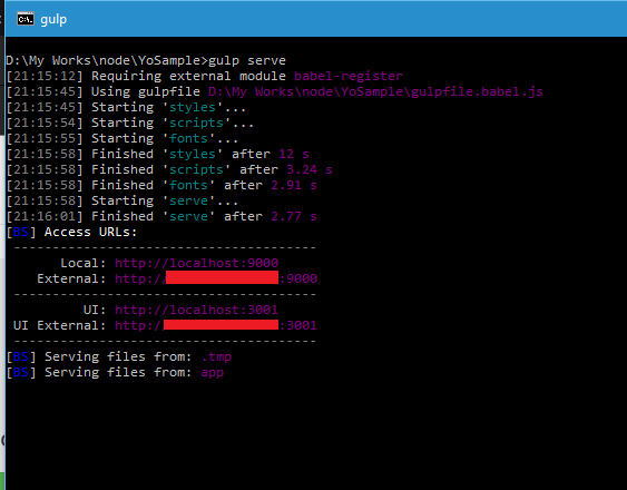 Once the scaffolding is completed, you use the gulp serve command to preview the changes in the browser.