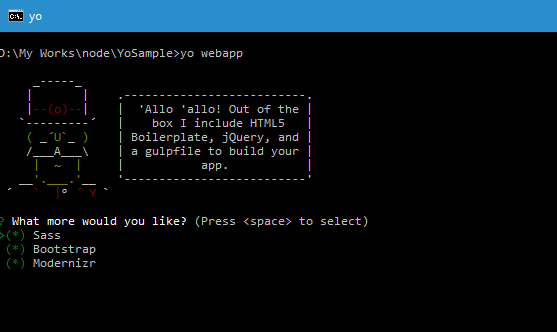 Today, I am going to explain the scaffolding process using Yeoman. If you are hearing the word Yeoman for the first time, please refer my earlier post on Introuduction to Yeoman to get a better idea.
