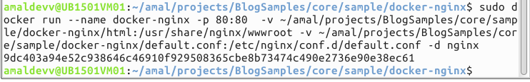 docker run --name docker-nginx -p 80:80 -v ~/amal/projects/BlogSamples/core/sample/docker-nginx/html:/usr/share/nginx/wwwroot