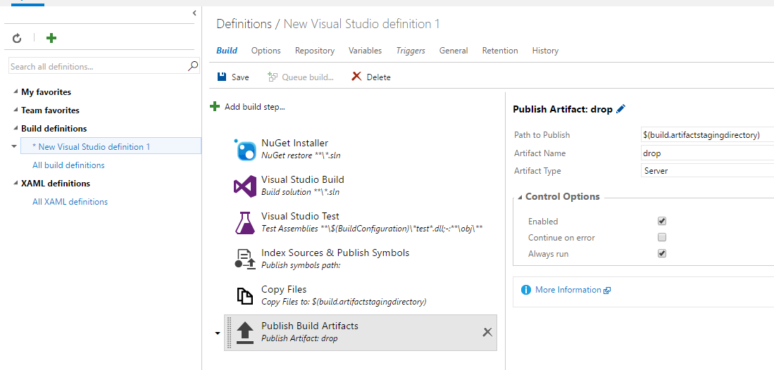 Visual Studio Team Services : Creating Build Definitions