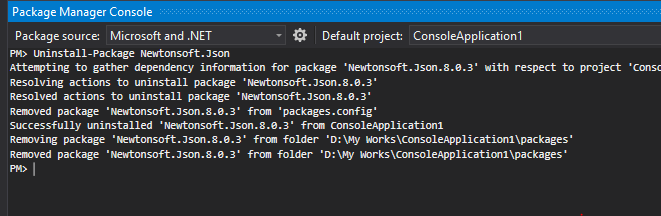 Uninstall-Package Newtonsoft.Json